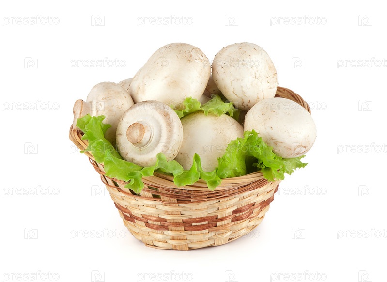 Грибы в корзине на белом фоне