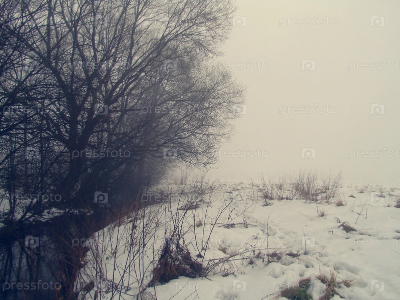 Луг в окружении деревьев зимой