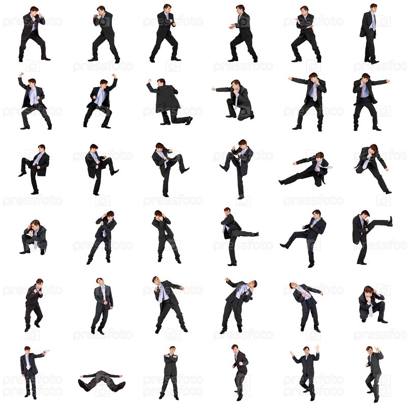 Деловой мужчина занимается боевыми искусствами, коллаж
