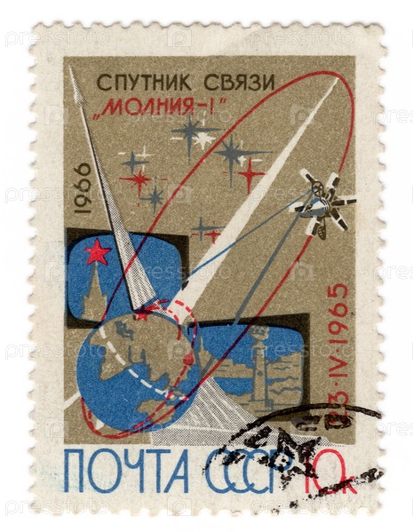 Почтовая марка СССР - спутник связи "Молния-1" (1966 год)