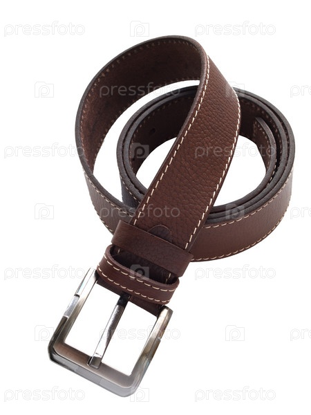 Коричневый кожаный ремень, изолированный на белом фоне