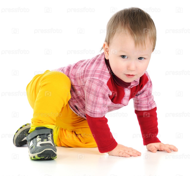 Маленький мальчик на полу. На белом фоне