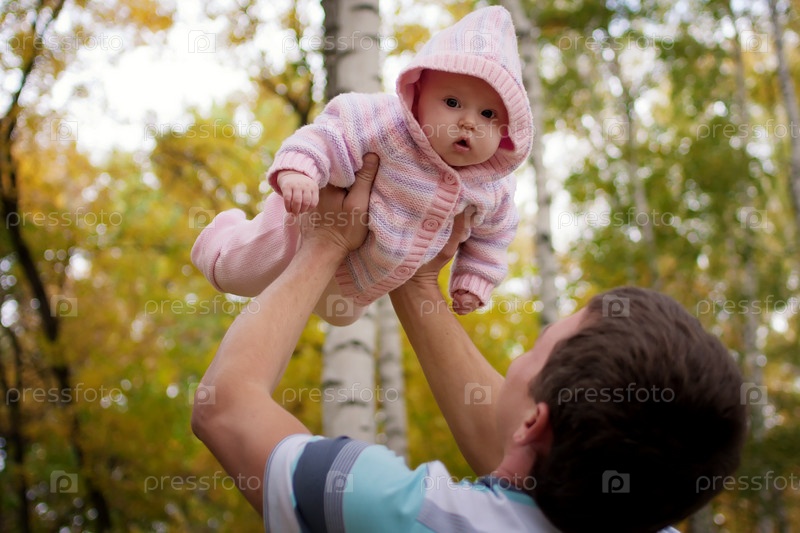 Счастливый папа с дочкой в парке