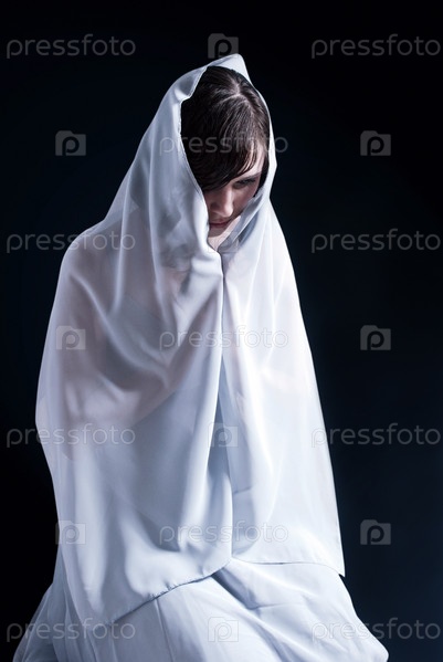 Молодая женщина молится, темный фон
