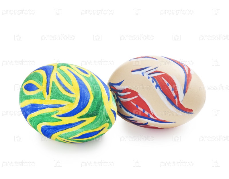 Крашеные пасхальные яйца на белом фоне