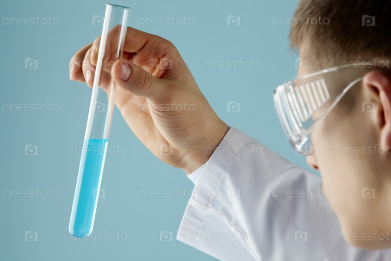 Молодой человек с лабораторной колбой