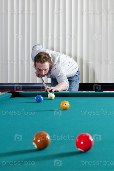 Молодой мужчина, играющий в бильярд