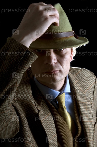 Молодой мужчина в шляпе на черном фоне
