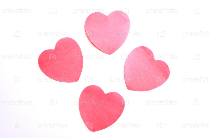 Четыре красных бумажных сердца изолированы на белом