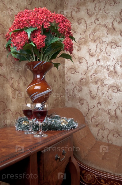 Букет красных цветов в стеклянной вазе