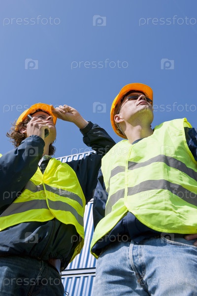 Два инженера на фоне голубого неба