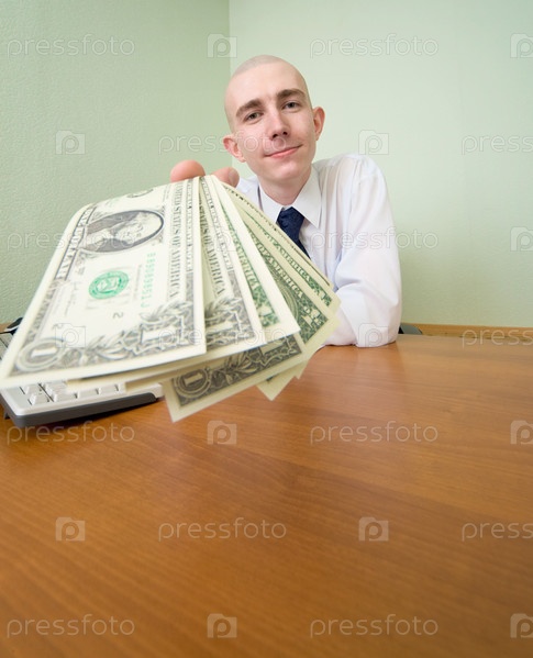 Начальник протягивает нам пачку долларов