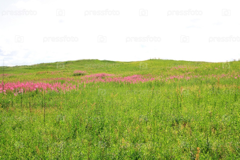 Сиреневые цветы в зеленом поле