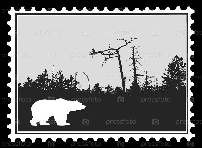 Почтовая марка с изображением силуэта медведя