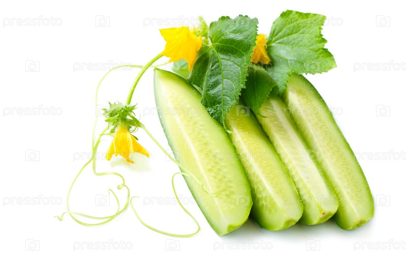 Свежие огурцы с листьями на белом фоне