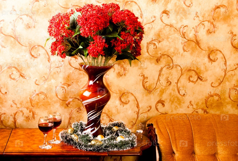 Букет красных цветов в стеклянной вазе