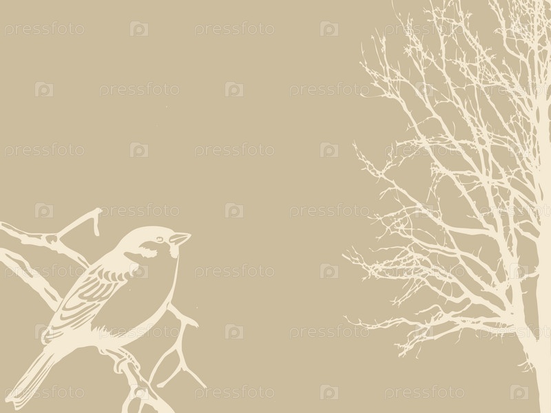 Иллюстрация птицы на дереве на сером фоне