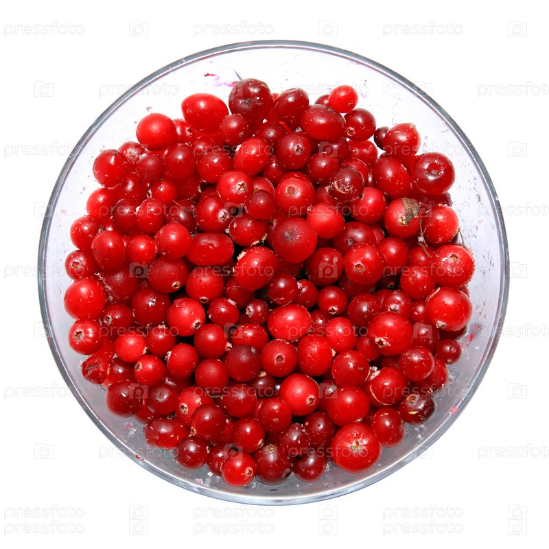 Клюква в тарелке на белом фоне