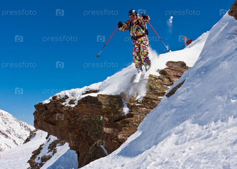 Лыжник прыгает с утеса