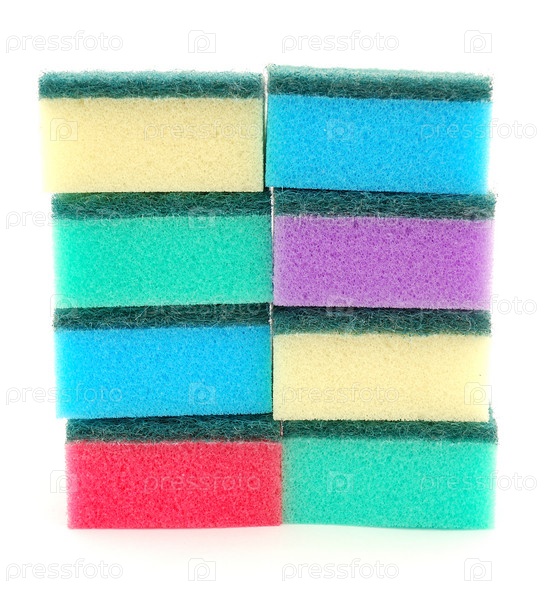 Губки для мытья посуды на белом фоне