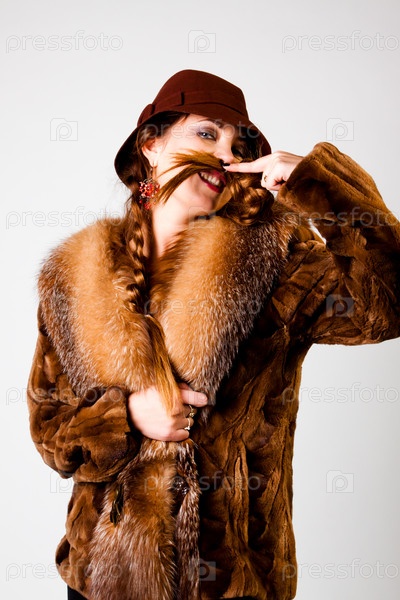 Портрет молодой женщины в шубе и шляпе