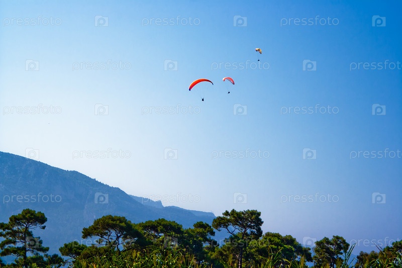 Парапланеристы в небе над горами