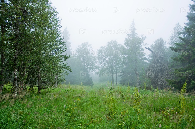 Туманный лес на плато Кваркуш. Пермский край. Россия