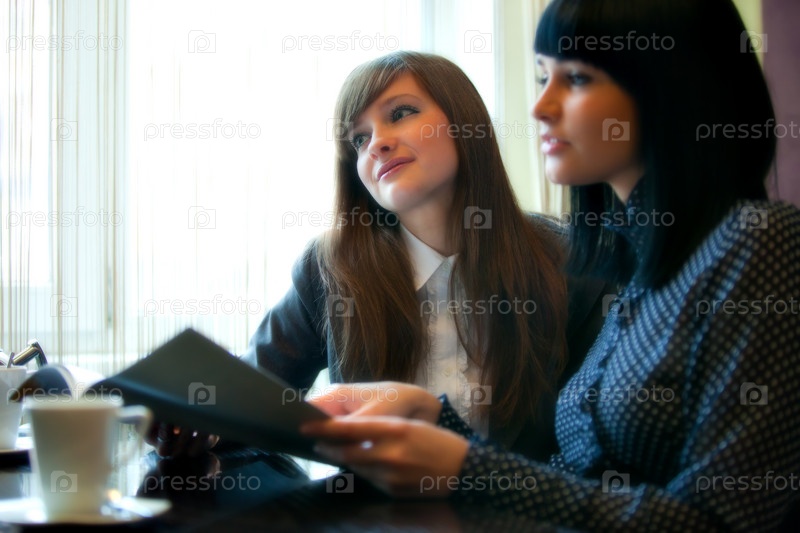 Две женщины в кафе изучают меню