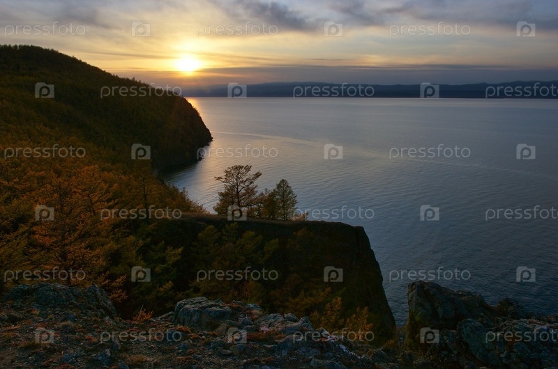 Байкал. Вечерний закат у мыса Хобой с видом на Малое море