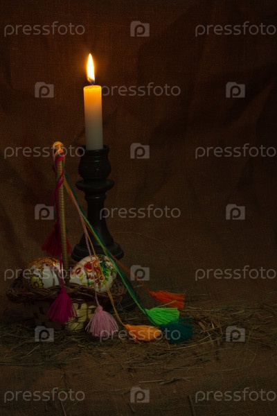 Яйца в корзине на темном фоне