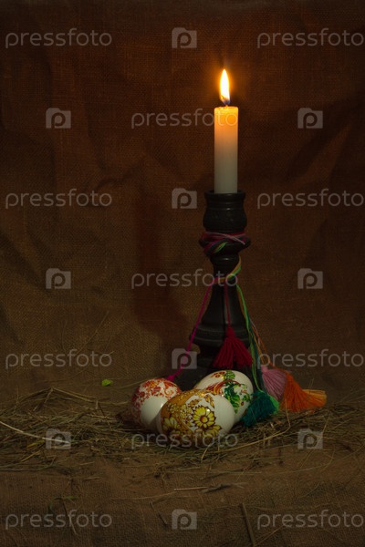 Яйца и свеча на темном фоне