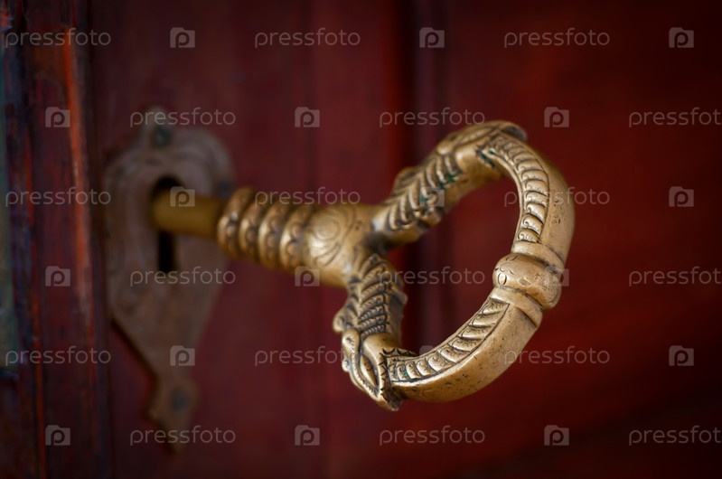 Старый бронзовый ключ в двери