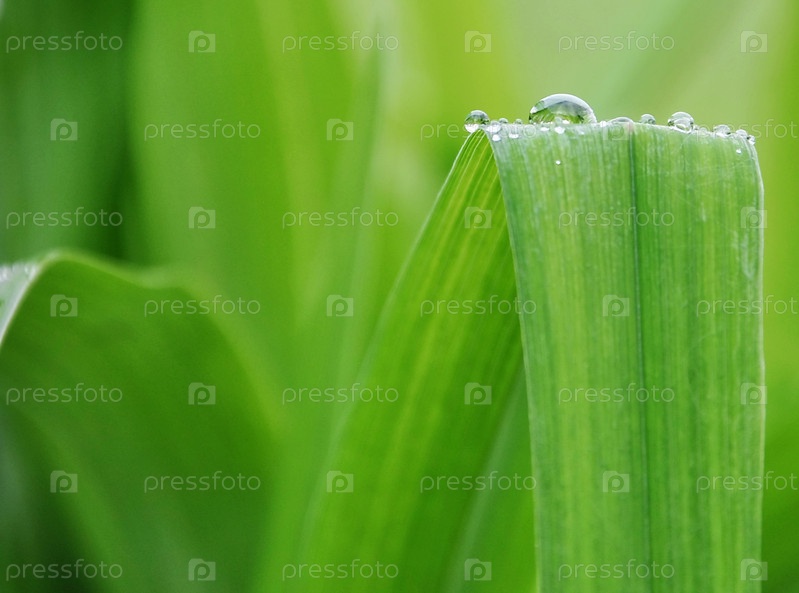 Капельки росы на зеленом листе