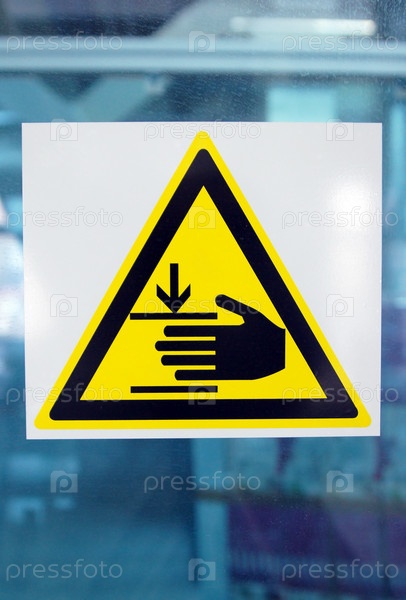 Знак опасности на стеклянной стене