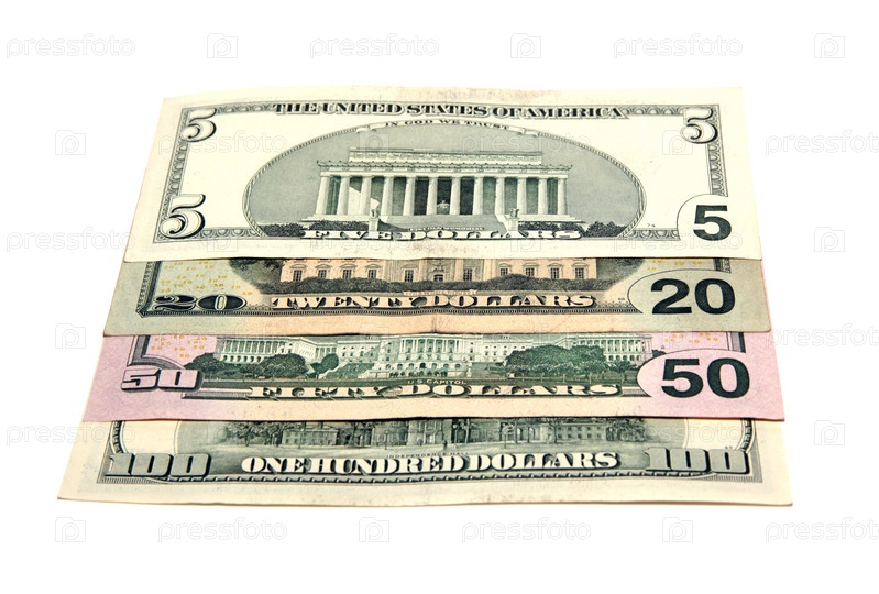 Долларовые купюры на белом фоне