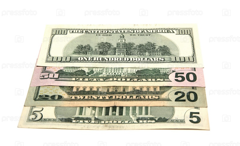 Долларовые купюры на белом фоне