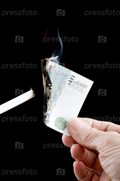 Object on black - currency burning paper money Объект на черной валюте, сжигающей бумажные деньги