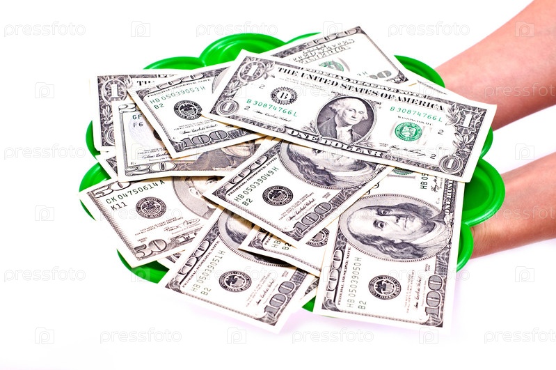 Некоторые доллары на белом фоне (изолированные, вблизи)
