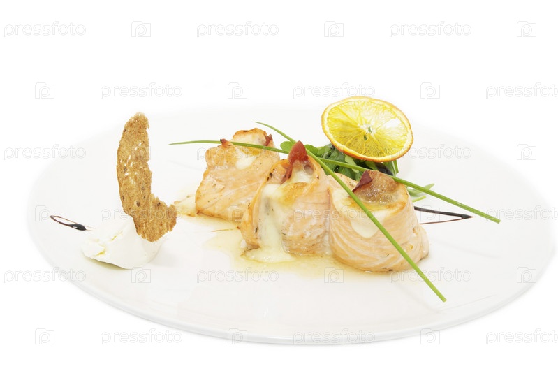 Жареное филе рыбы на белом фоне