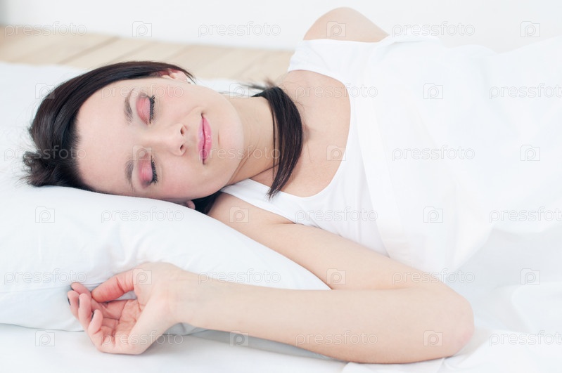 Молодая женщина спит в постели