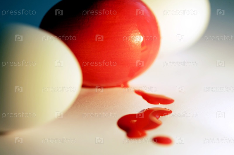 Пасхальное кроваво-красное яйцо и красные капли