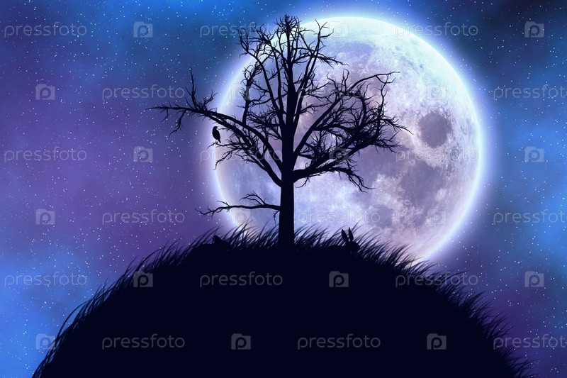 Дерево на фоне большой луны