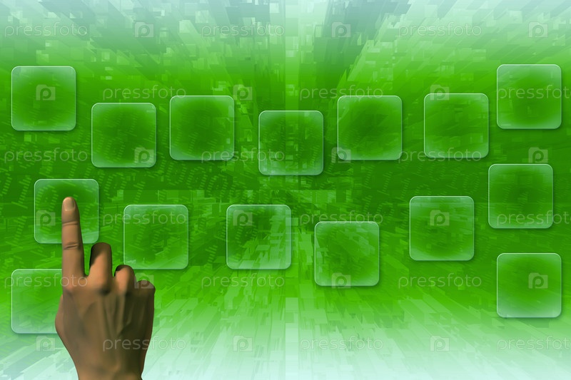 Рука нажимает кнопку на сенсорном экране