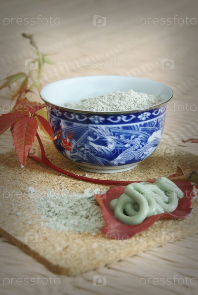 Косметическая голубая глина в чашке