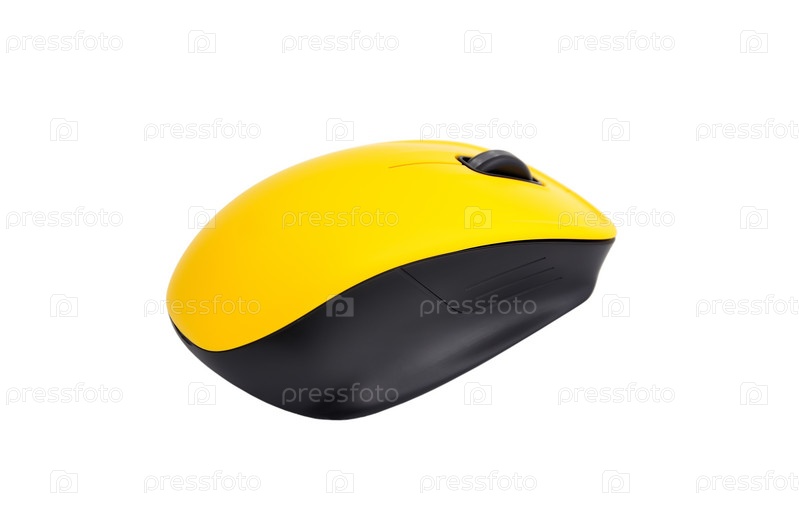 Желтая беспроводная мышь на белом фоне