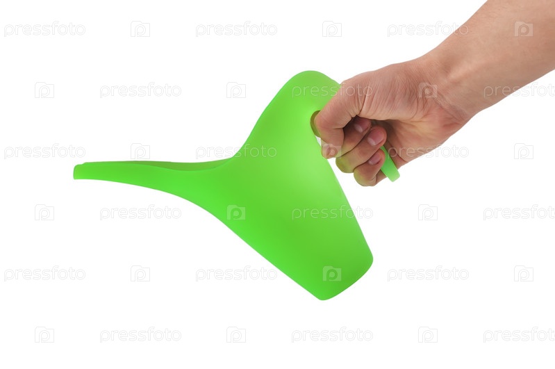 Лейка в руке на белом фоне