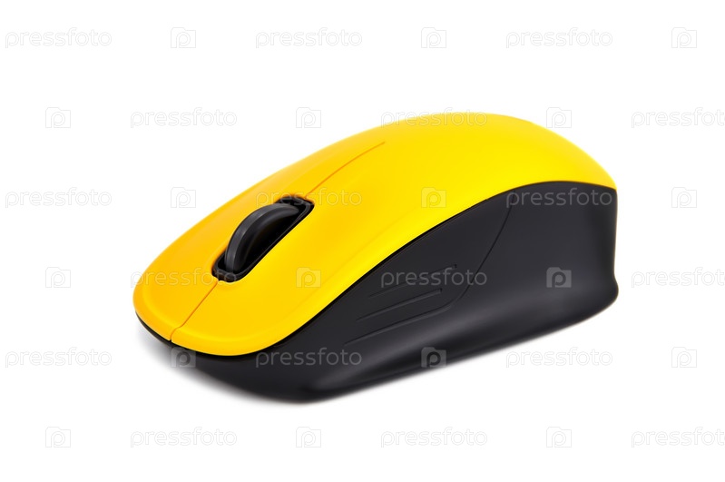 Желтая беспроводная мышь на белом фоне