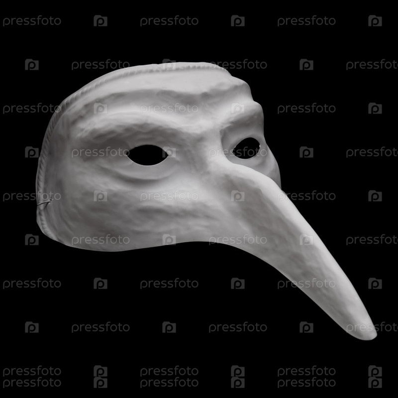 Белая маска комедии дель арте, изолирована на черном фоне