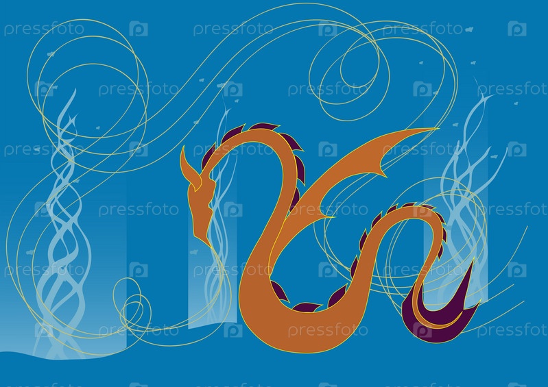Оранжевый дракон на синем фоне