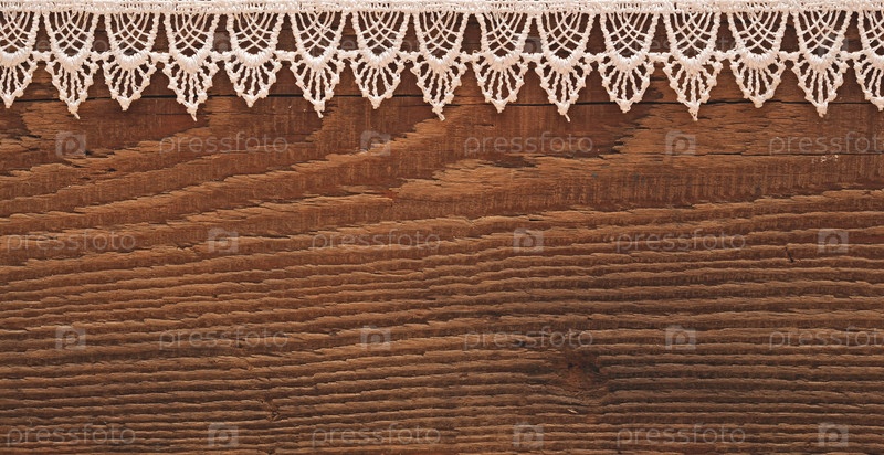 Белое кружево на деревянном фоне